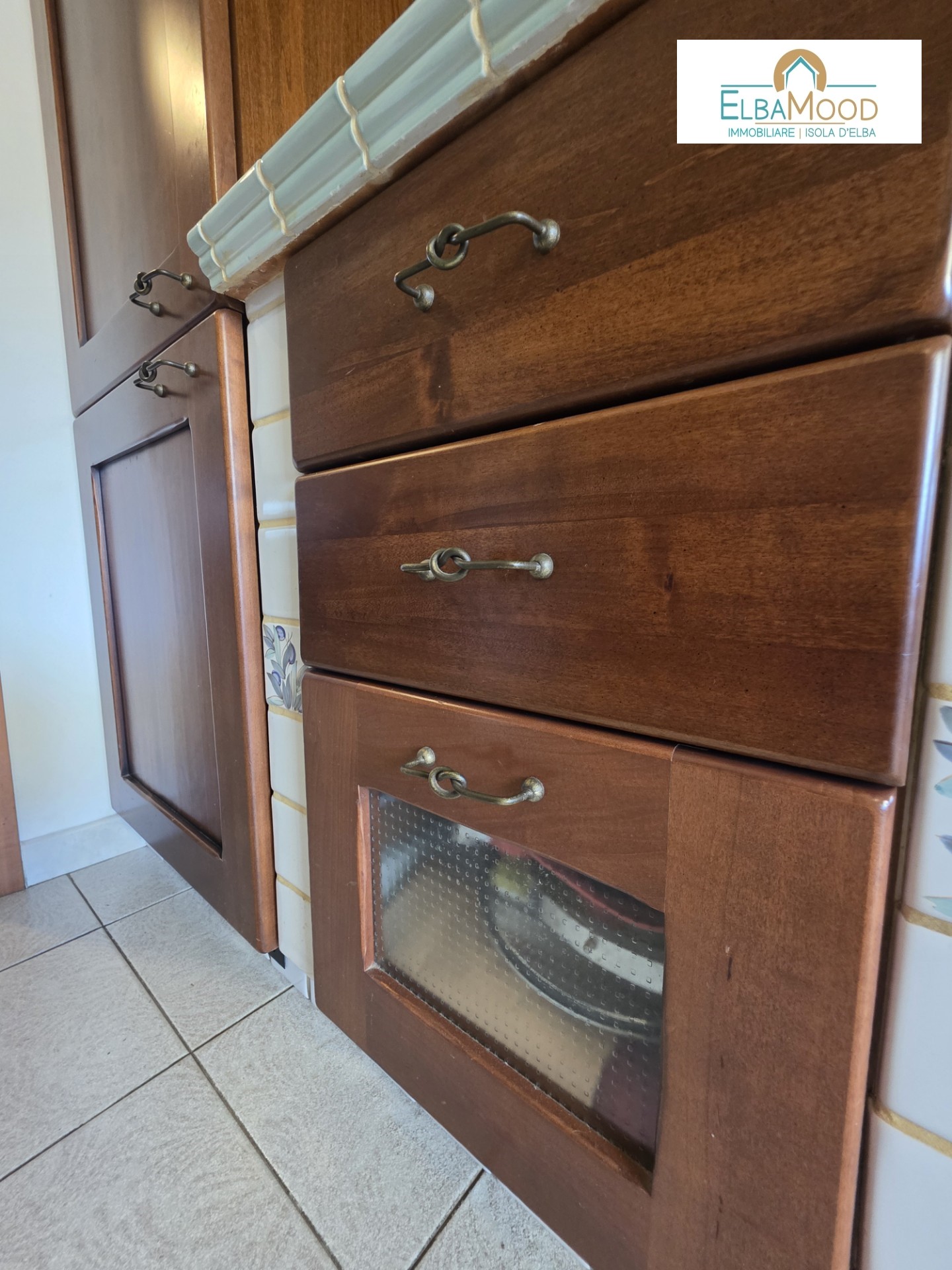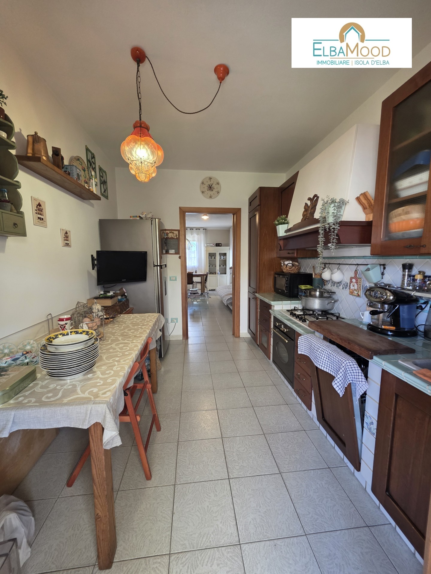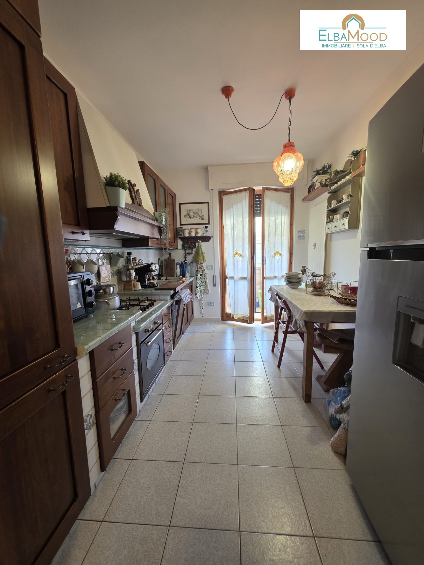 La cucina separata, è in muratura e si affaccia su un secondo balcone, anch’esso con vista mare.