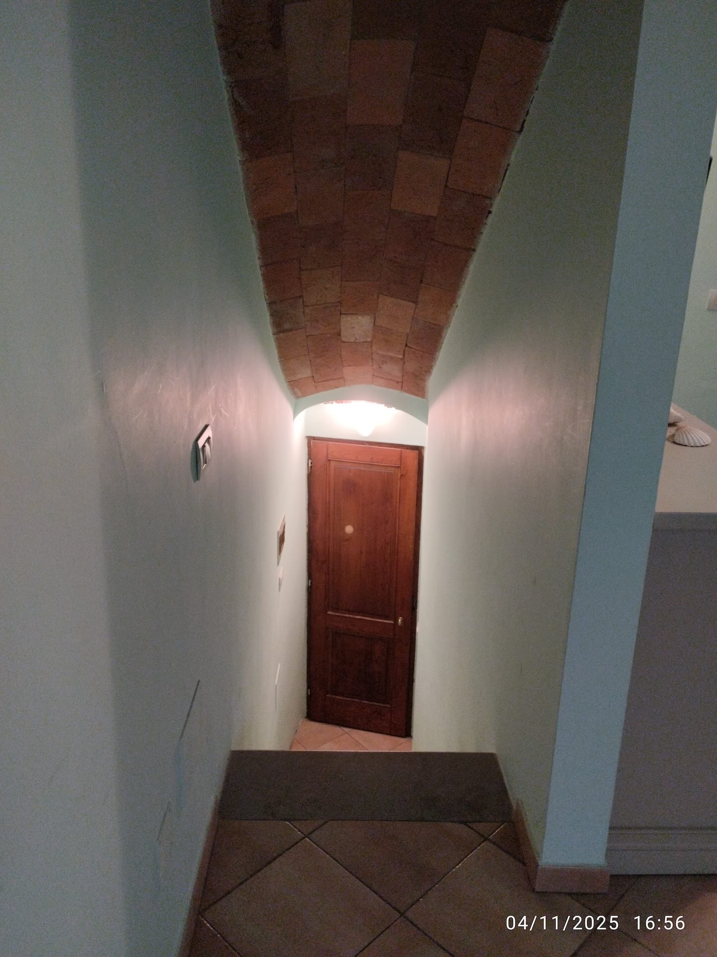 L’abitazione gode di ingresso indipendente e, tramite una piccola rampa di scale, si accede direttamente alla zona giorno, composta da soggiorno e area pranzo. Due scalini conducono al disimpegno, dal quale si accede al bagno con doccia e aerazione forzata, completo di lavatrice, e alla camera matrimoniale con portafinestra panoramica, che regala una splendida vista sul paese e sul tramonto.