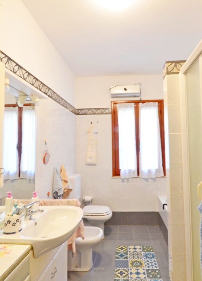 Il grande bagno finestrato, è completo sia di vasca che di doccia e attrezzato con lavatrice, dettagli sempre apprezzati.