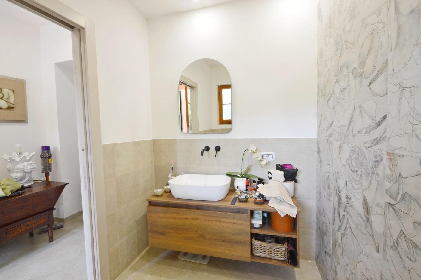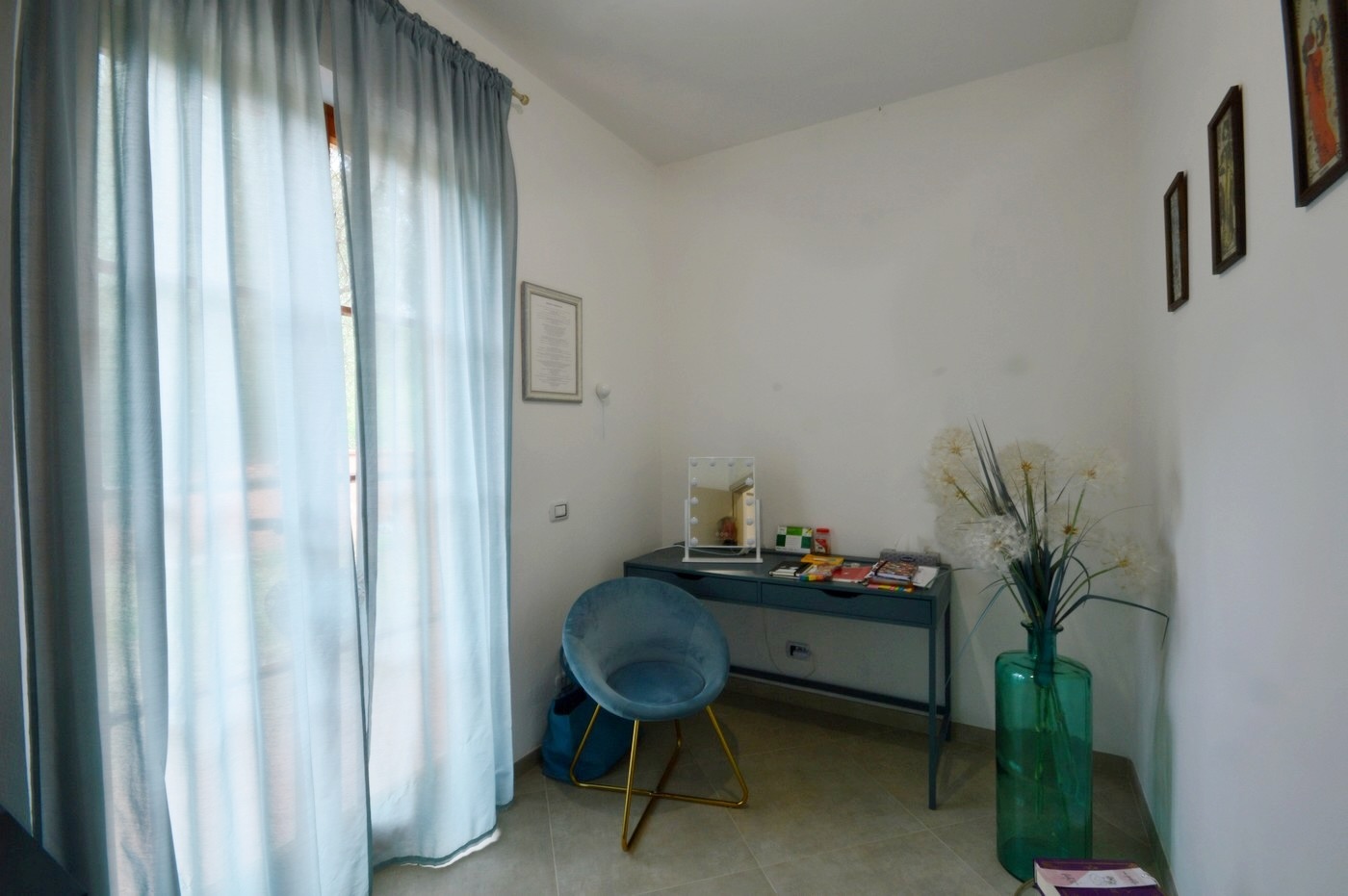 La zona giorno è ampia e luminosa, con una cucina-pranzo conviviale e un salotto che invita a fermarsi, impreziosito da un termo-camino che rende la casa piacevole e confortevole anche nei mesi più freschi. Il disimpegno conduce alla zona notte, composta da una camera grande, uno studio e un servizio con doccia, per poi arrivare a una splendida suite padronale: un ambiente spazioso e riservato, con bagno privato e comoda cabina armadio, pensato per chi desidera un proprio spazio intimo e ben organizzato.